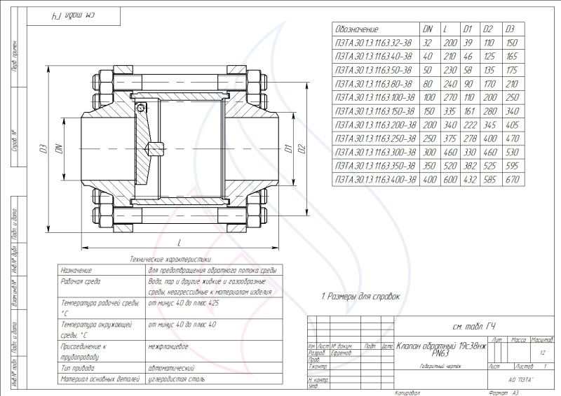 | 19с38нж (DN 400, PN 6,3, вода и пар, нефтепродукты; углеродистая сталь) | 400 | 6,3 | под приварку | рабочей средой | У | от -40 до 425 | углеродистая сталь | обратная арматура | запросить цену | запросить сроки поставки |